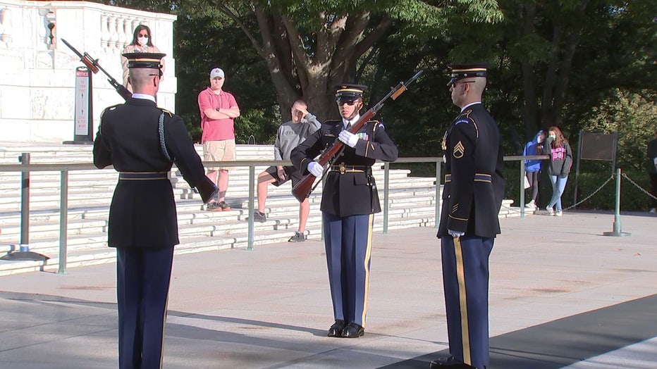 The guard change at the Tomb of the Unknown Soldier is an elaborate ceremony that occurs every hour on the hour from Oct. 1 through March 31, and every half hour from April 1 through Sept. 30.
