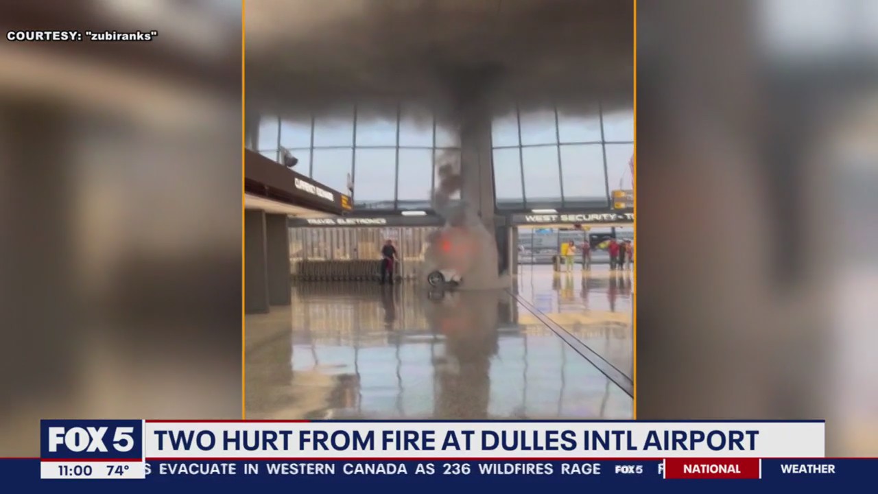 Two people were injured when a segway caught fire at Dulles International Airport Saturday.