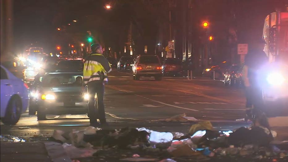 WASHINGTON - A messy start to Monday's morning commute after a tractor trailer carrying trash overturned on a busy roadway and spilled over onto the street below.