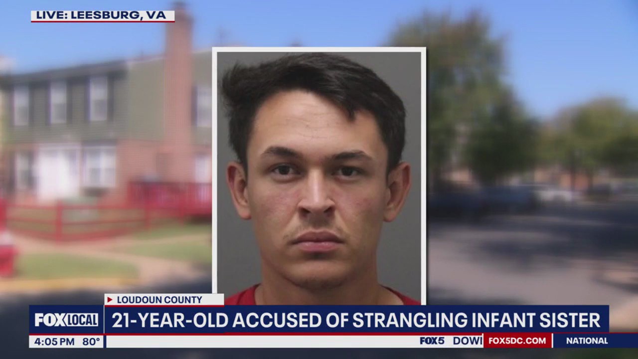 LEESBURG, Va. - A 21-year-old man is accused of strangling his infant sister. The baby remains in critical condition.