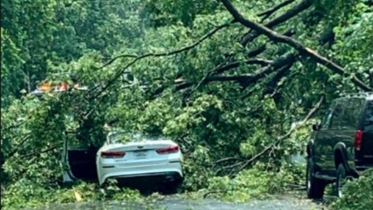 The massive tree crashed onto the car in the 4700 block 1st St SW. DC firefighters were able to safely removed the five occupants who were temporarily trapped in their vehicle.