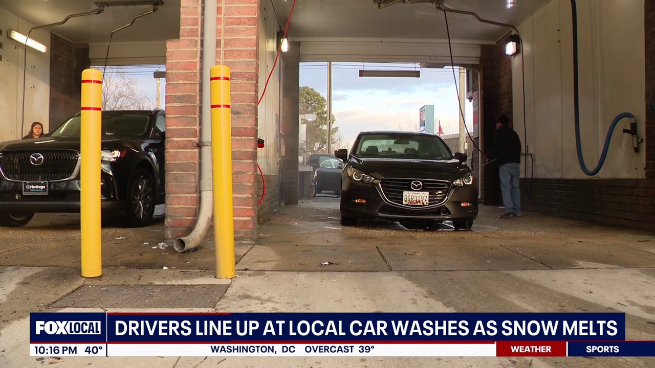 Drivers line up at local car washes across DMV as snow finally begins to melt