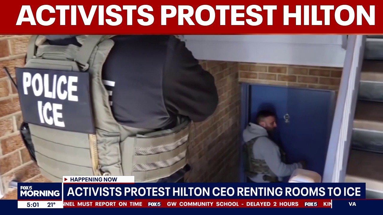 FOX 5’s Melanie Alnwick reports that organizers want Hilton to stop providing lodging to ICE, saying the practice enables federal immigration operations.