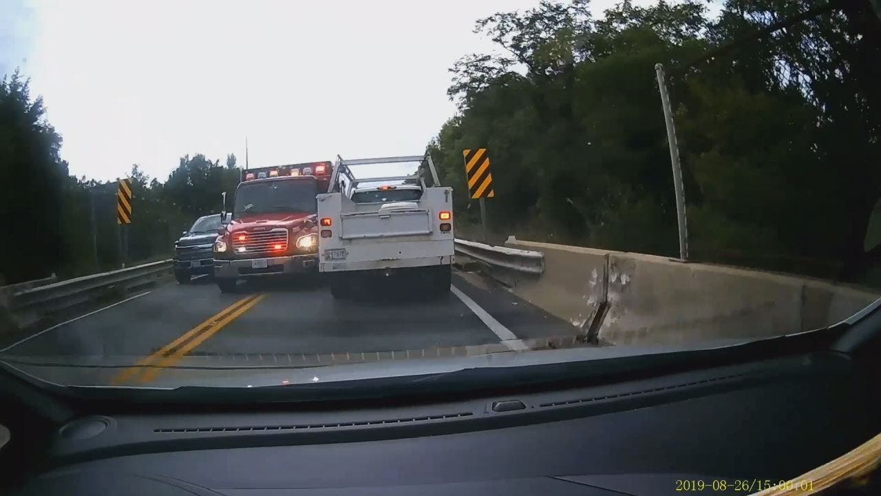 Video surfaced earlier in the week showing the ambulance barreling down the middle of a two-lane bridge. At least one vehicle was damaged during the incident.