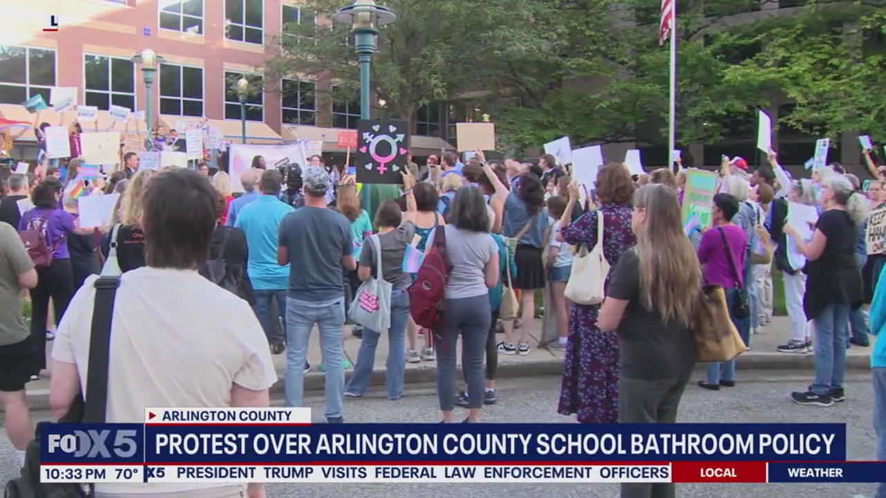 ARLINGTON, Va. - Arlington County became the latest flashpoint in the national debate over transgender student rights Thursday night, as protesters rallied outside a packed school board meeting.