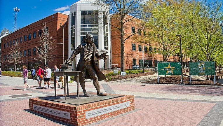 Statue of George Mason on campus of George Mason University, Fairfax, Virginia. (Photo by: Robert Knopes/UCG/Universal Images Group via Getty Images)