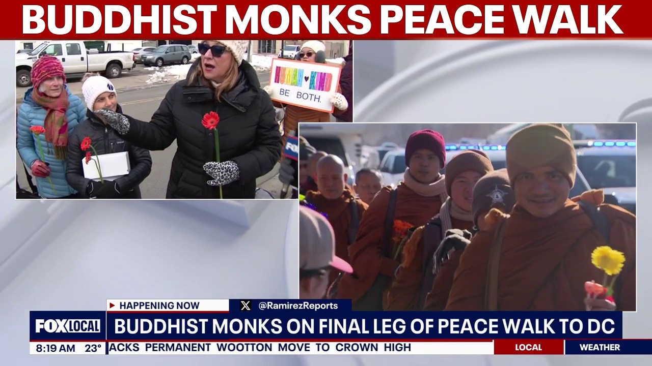 FREDERICKSBURG, Va. - A group of Buddhist monks walking across the country for peace is continuing its trek through Northern Virginia on Friday as they near the final stretch of their 2,300‑mile journey to Washington, D.C.