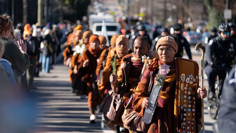 CHARLOTTE, NORTH CAROLINA - JANUARY 15: The venerable Bhikkhu Pannakara leads Buddhist monks as they continue their Walk for Peace on January 15, 2026 in Charlotte, North Carolina. The monks are walking from Houston, Texas to Washington, D.C. spreadi