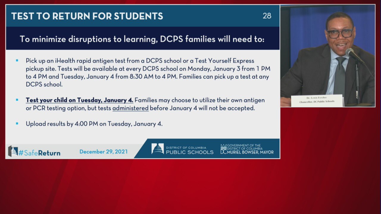 All D.C. Public School students and staff will be required to provide proof of a negative COVID-19 test before returning to school on Wednesday, January 5, 2022.
