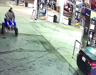 In the second incident, which happened on Saturday, March 15, just before 8:15 p.m., surveillance video shows a blue ATV circling gas pumps at a Sunoco station near 15th and U Streets in the northwest. Police officers attempted to stop a group of individuals riding ATVs nearby when one rider allegedly struck an officer.