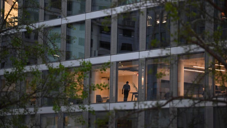 WASHINGTON, DC- APRIL 25: A person is seen in an office building along 13th Street NW on Monday April 25, 2022 in Washington, DC. The pandemic has had an effect on some businesses in the DC central business district. (Photo by Matt McClain/The Washin