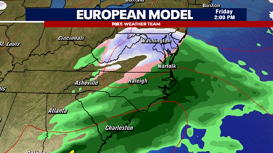 European Model Projection for Friday Afternoon, Showing Snowfall In The DC Region