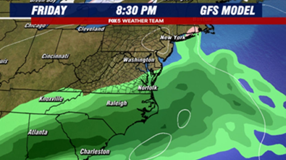 Yes! Or rather...it is possible. Weather models are hinting that more winter weather may brush the Washington, DC region on Friday as a developing system swings along the Mid-Atlantic. While the atmospheric setup does have the attention of Fox 5 meteorologists, the threat for accumulating snow remains highly uncertain even with the threat just a few days away. The range of potential outcomes is unusually wide for a short-range forecast.