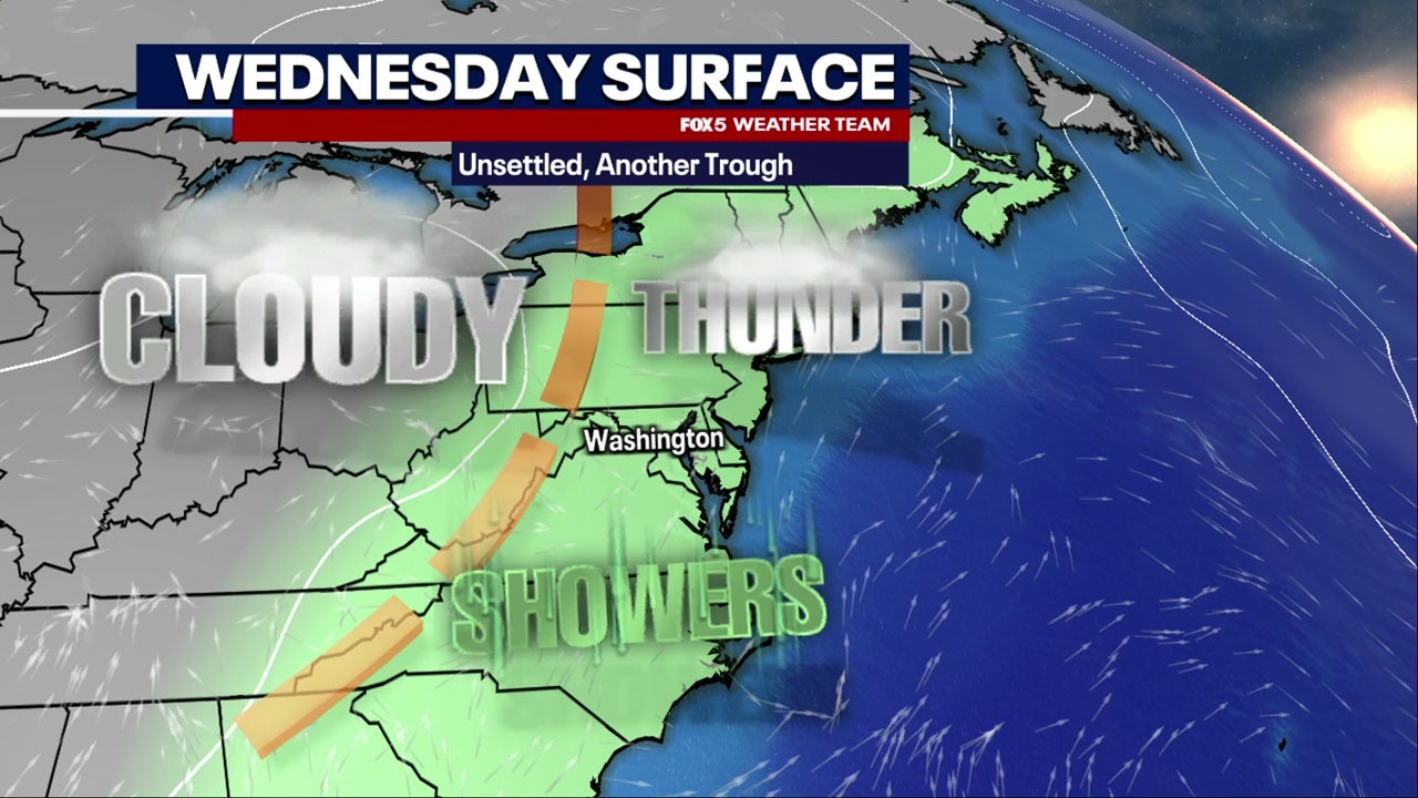 A chance of showers and thunderstorms Wednesday across the D.C. region.
