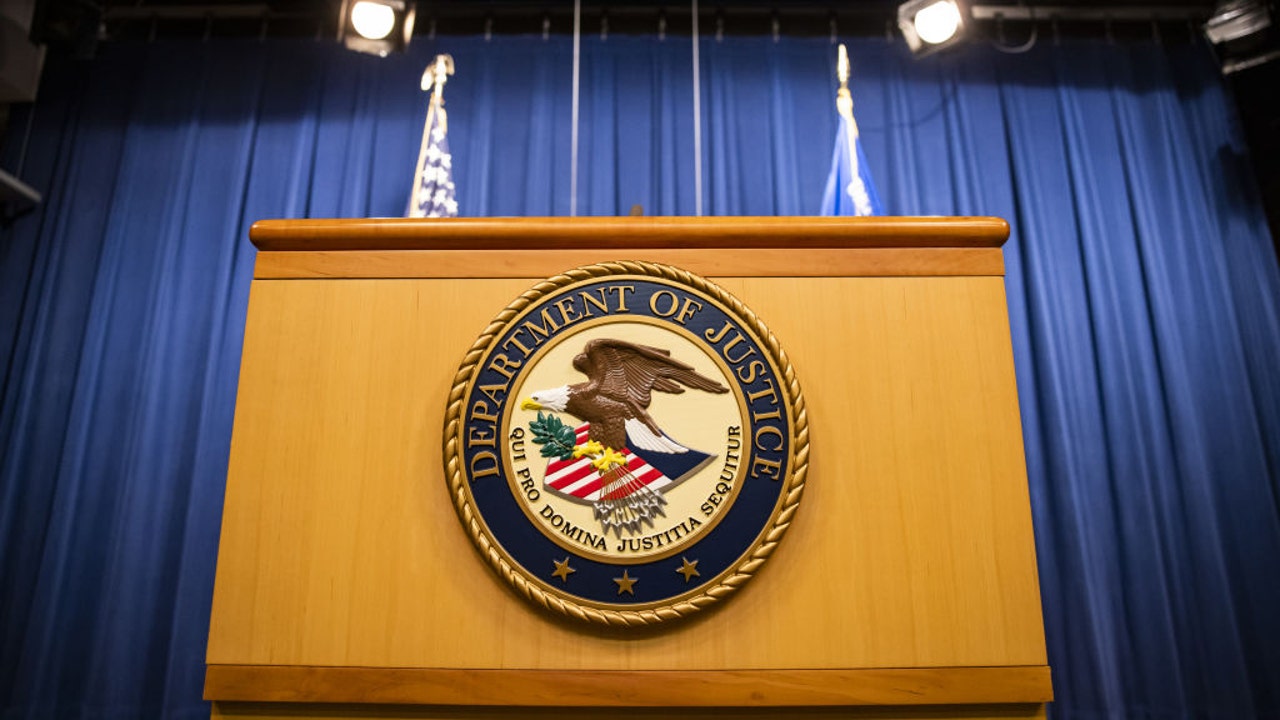 The U.S. Department of Justice seal on a podium in Washington, D.C., U.S., on Thursday, Aug. 5, 2021. (Samuel Corum/Bloomberg via Getty Images)