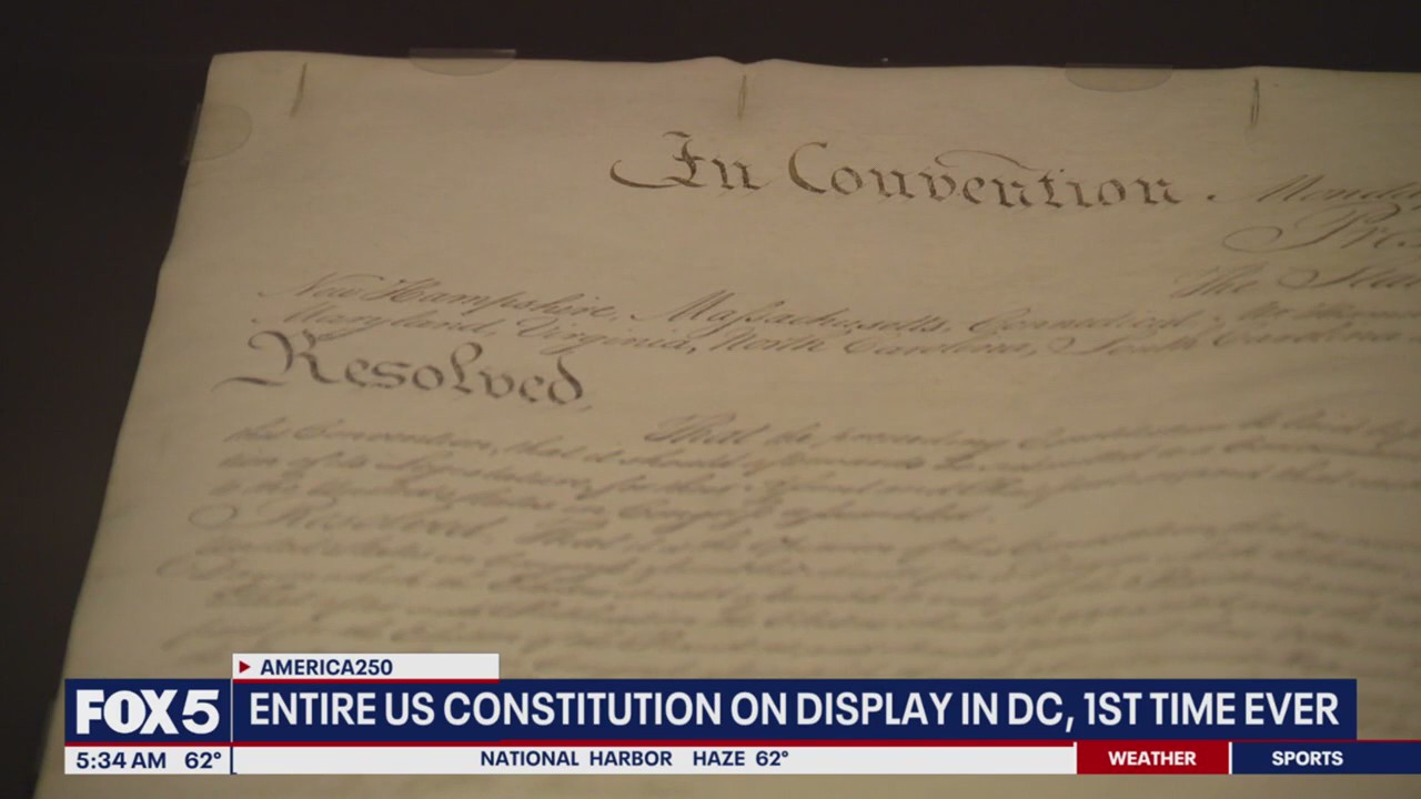 For the first time in history, the complete U.S. Constitution is on display at the National Archives in Washington, D.C., as the nation prepares to celebrate its 250th anniversary. FOX 5’s Stephanie Ramirez was granted access inside the Archives for a first glimpse of the exhibit.