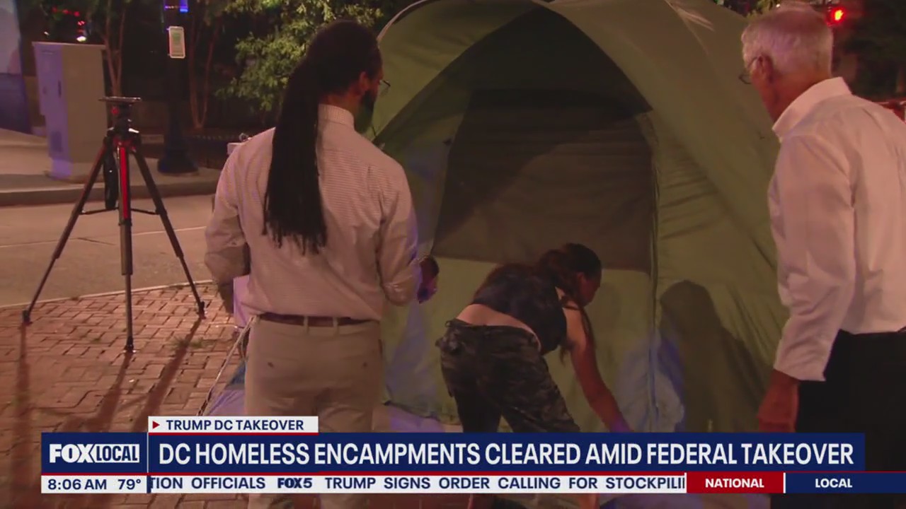 A White House official confirmed to FOX 5 DC that three multi-agency teams were assigned to begin clearing homeless encampments in the District. Homeless individuals will be allowed to leave the area, be taken to a homeless shelter or offered addiction and mental health services. Anyone who refuses to leave the area could receive fines or jail time.