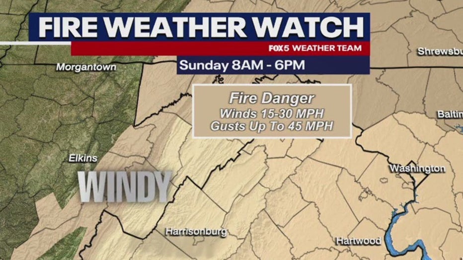 WASHINGTON - A Fire Weather Watch has been issued for much of Virginia and parts of Maryland and Washington, D.C., this weekend.