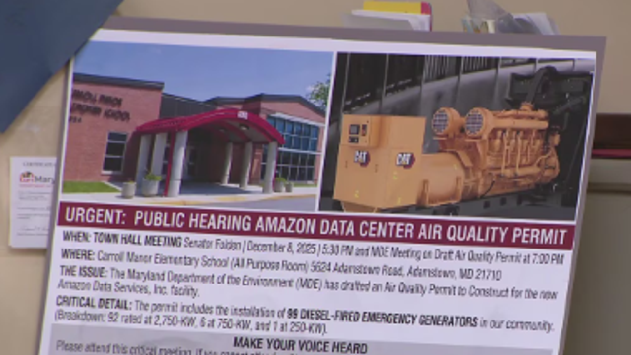 A Maryland community is speaking out against a plan to have several dozen diesel generators for data centers in their neighborhood. A meeting was held Monday night in Frederick County, where residents expressed concerns about its possible proximity to an elementary school. FOX 5's Nana Sentuo Bonsu reports.