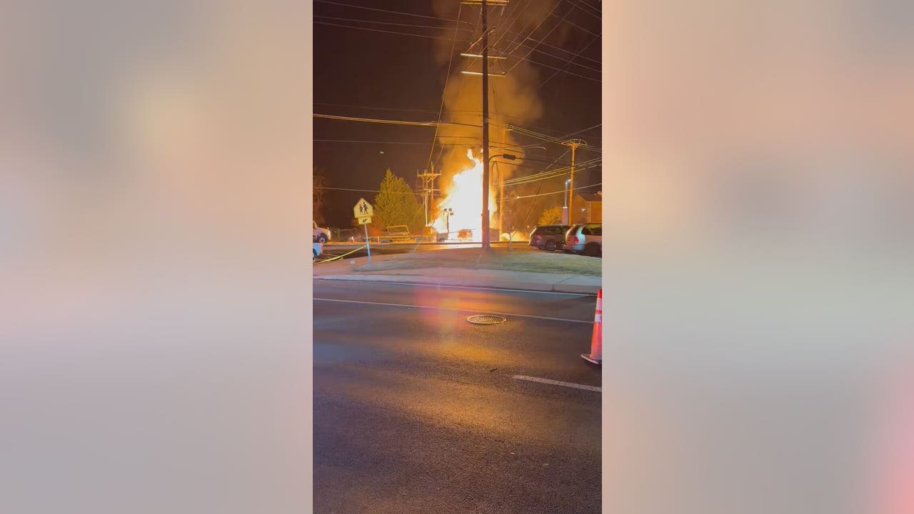 According to the Prince George's County Fire Department, a gas leak led to an explosion that brought down power lines.