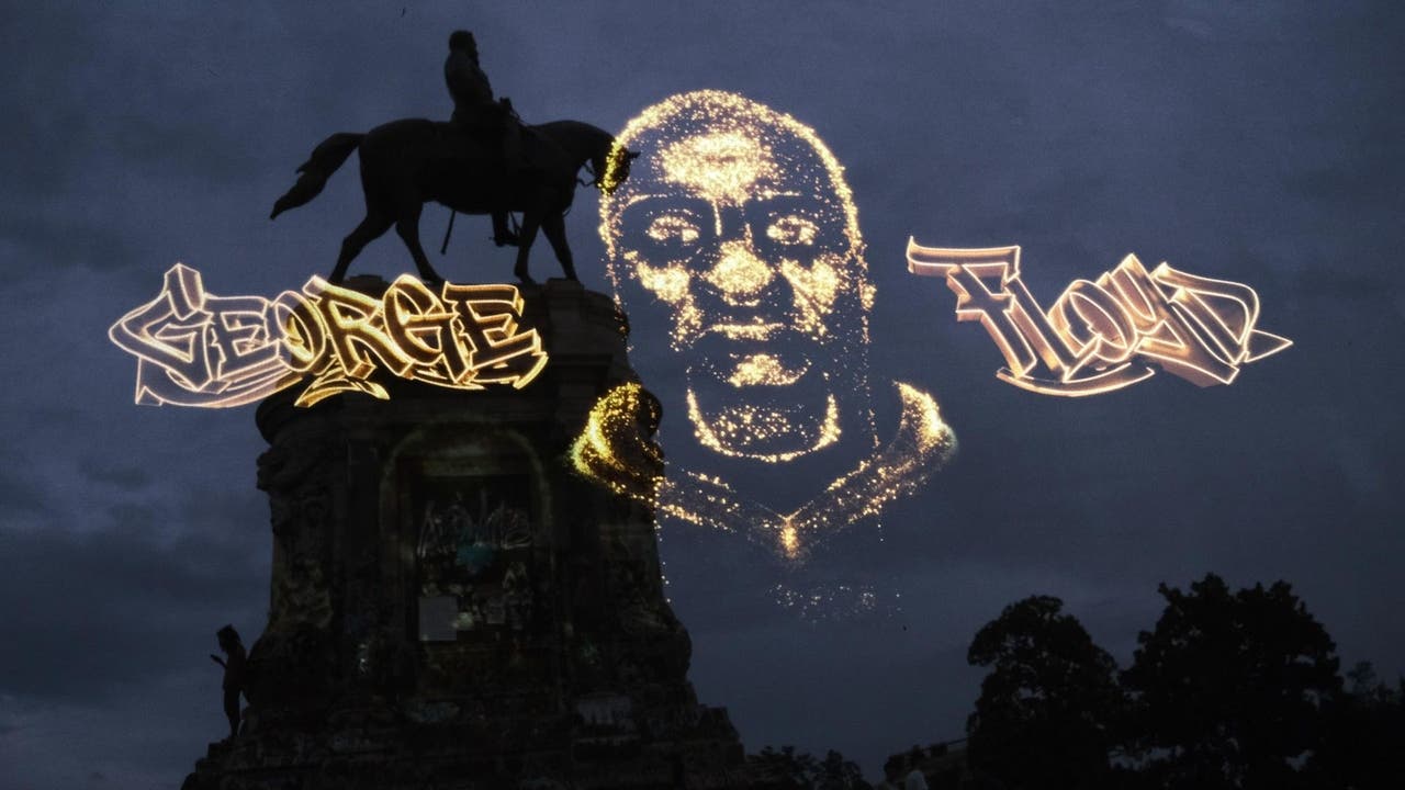 The family of George Floyd witnessed the unveiling of a hologram in Virginia Tuesday night, where flickering lights came together to create an image of Floyd's head and shoulders transposed over the Confederate Gen. Robert E. Lee statue.