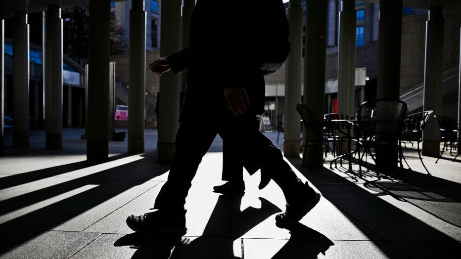 Commuters leave the Ronald Reagan Building and International Trade Center, which houses several US Federal Government offices, as they head to a DC Metro station in a lower floor at the end of the work day in Washington, DC, on March 18, 2025. As dra