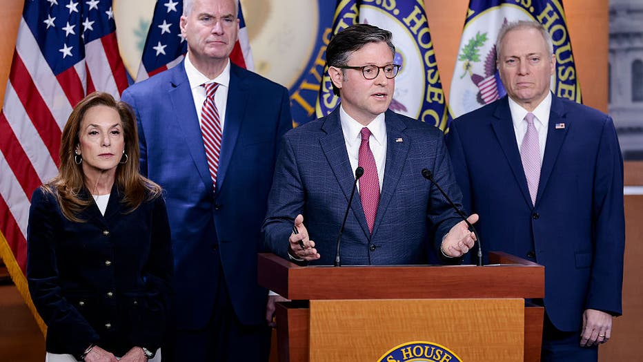 WASHINGTON, DC - DECEMBER 10: Speaker of the House Mike Johnson (R-LA) discusses affordability at a press conference on December 10, 2025 at the U.S. Capitol in Washington, DC. The Republican leaders discussed healthcare plans with a vote regarding a