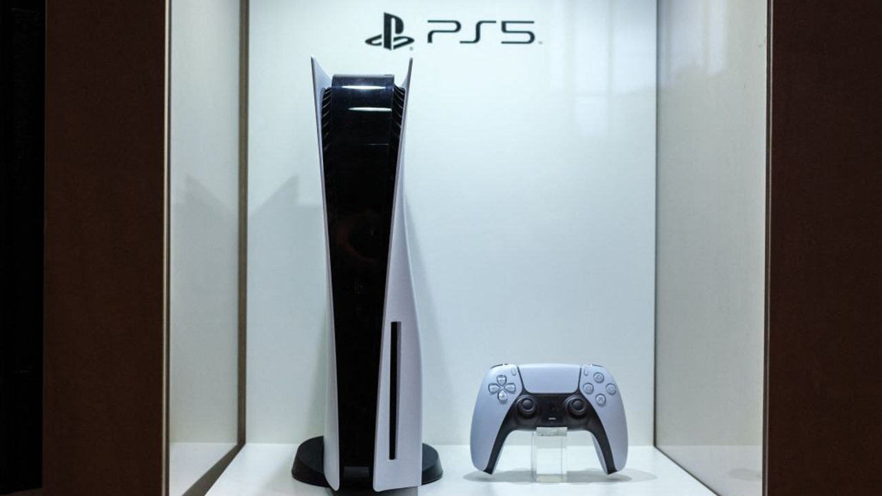 In this picture taken on May 9, 2022, a Sony Playstation 5 video game console is displayed at the company's headquarters in Tokyo. (Photo by Philip FONG / AFP) (Photo by PHILIP FONG/AFP via Getty Images)