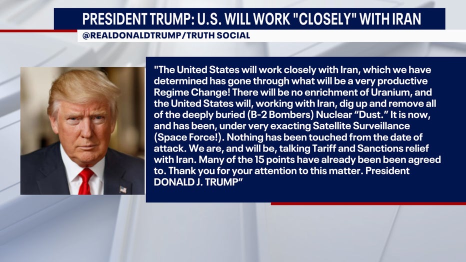 In a social media post, Trump said that there will be no enrichment of uranium and the two countries will work together to dig up and remove all of Iran's buried nuclear "dust" that the U.S. has been tracking.