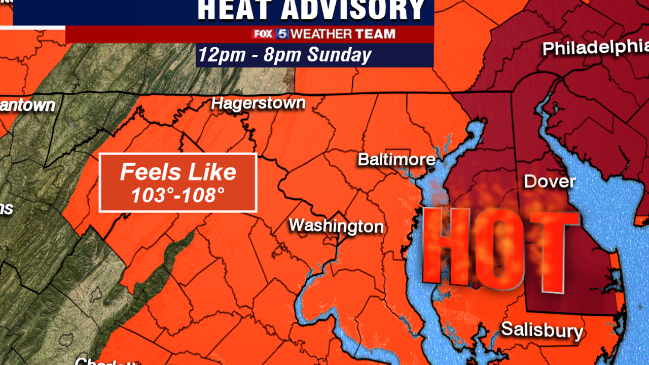 WASHINGTON - High heat and humidity will have it feeling as hot as 108 degrees Sunday.