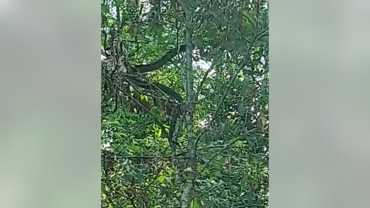 "I got my phone and started recording it going tree-to-tree," he added. Deaton said he gave the snake the nickname Darrel, and "Darrel is still out there wandering around," the landscape.