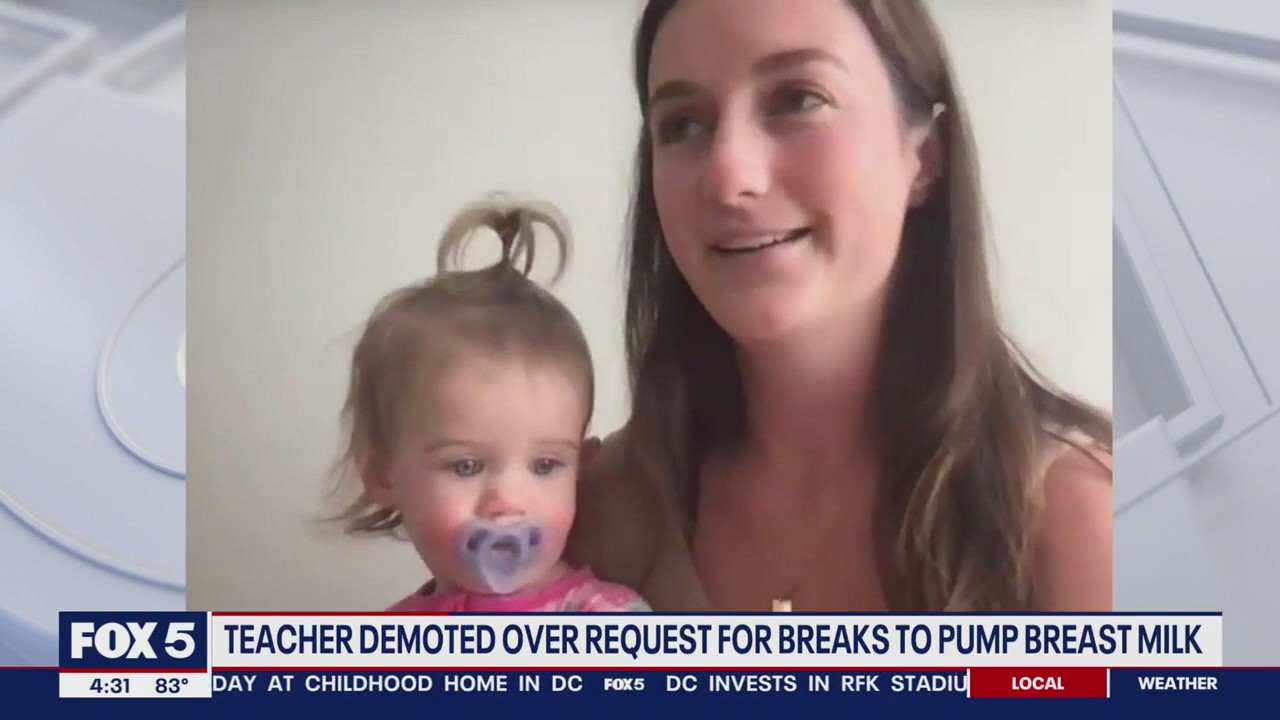 A local teacher says she was demoted after requesting to pump breast milk at work, a move she describes as both heartbreaking and disappointing. FOX 5's Katie Barlow has the story.