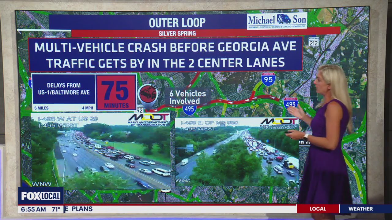 SILVER SPRING, Md. - A multi-vehicle crash shut down lanes on the outer loop of Interstate 495 early Monday, causing significant delays during the morning commute.