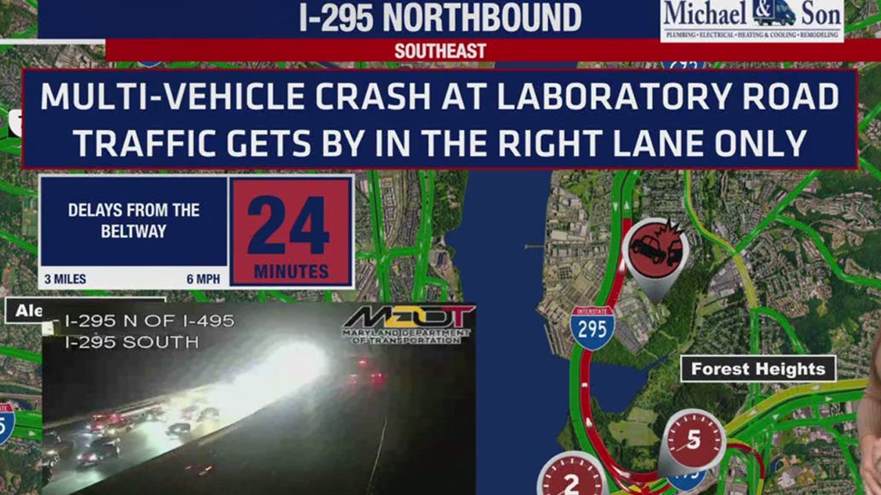 A multi-vehicle crash on I-295 is causing delays in D.C. Thursday morning.