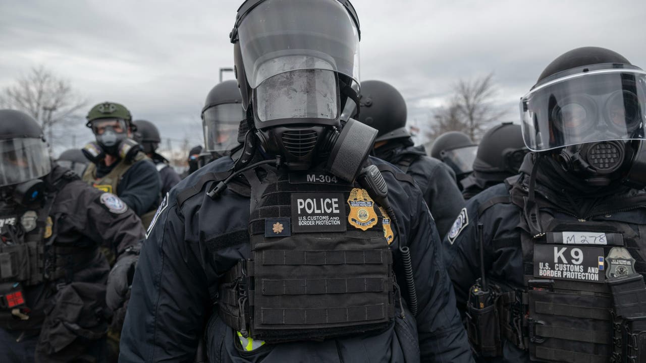 Federal law enforcement officers attempt to disperse demonstrators protesting Immigration and Customs Enforcement (ICE) activity outside the Bishop Henry Whipple Federal Building in St. Paul, Minnesota, US, on Thursday, Jan. 15, 2026. President Donal