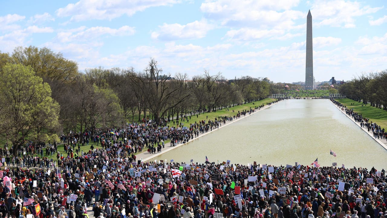 WASHINGTON - Thousands of demonstrators marched down the National Mall on Saturday as part of a third round of "No Kings" protests across the nation speaking out against Trump administration policies.