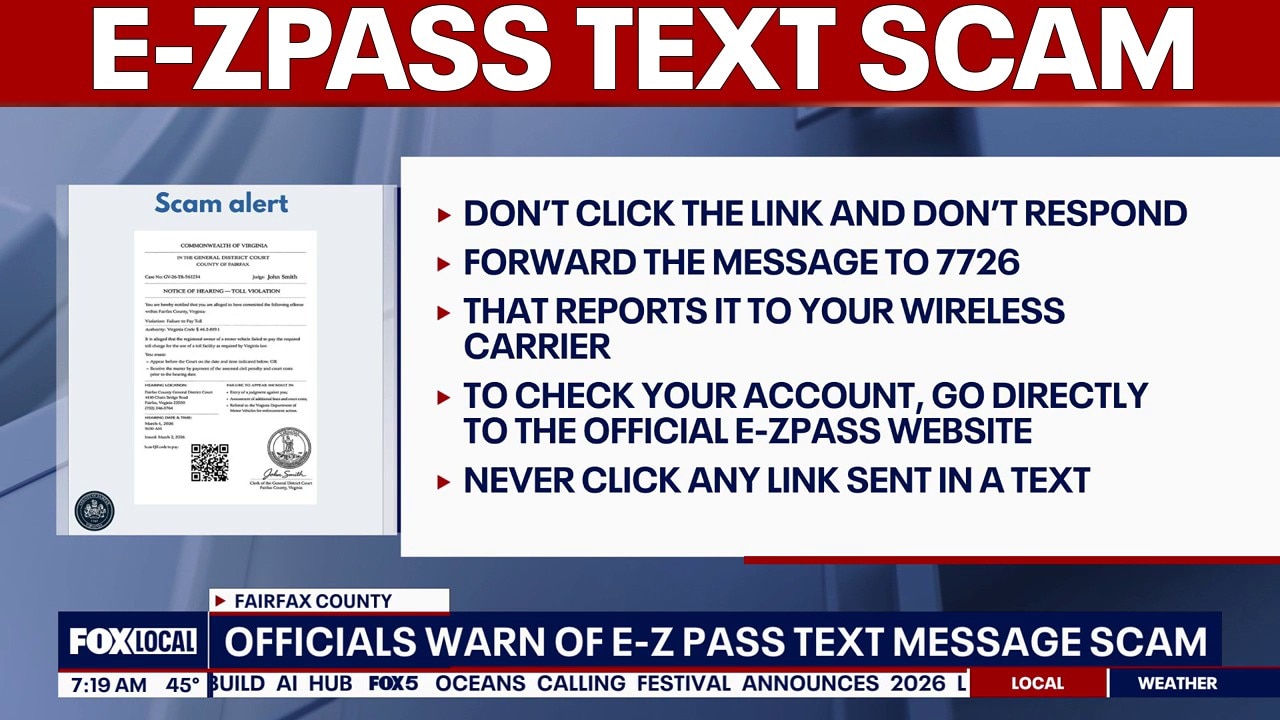 FAIRFAX COUNTY, Va. - Drivers across the D.C. region and nationwide are being warned about a growing text message scam involving fake E ZPass toll notices.