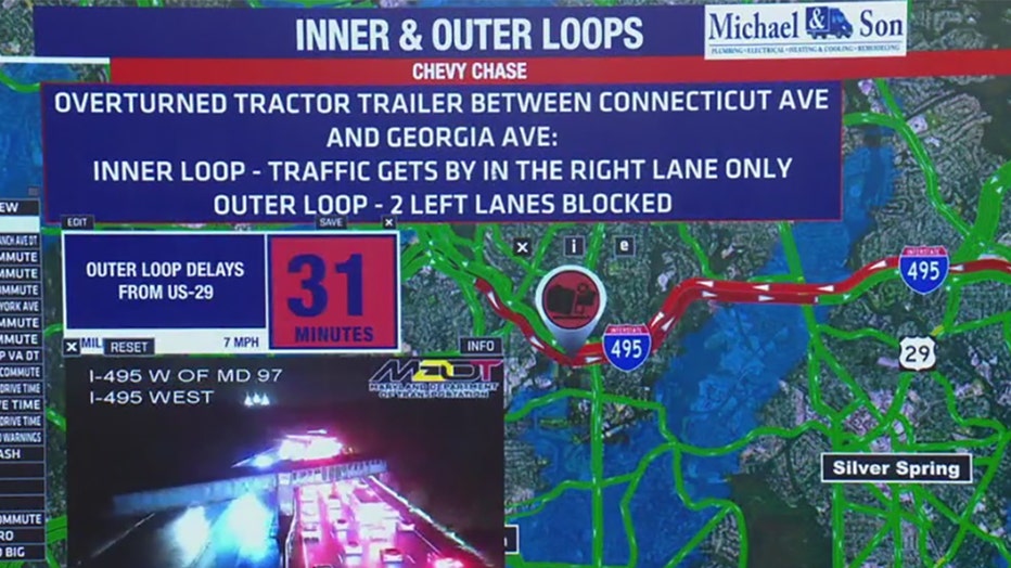 I-495 delays after tractor-trailer overturns in Chevy Chase