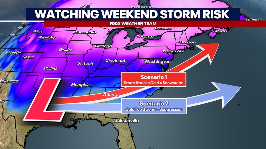 FOX 5’s Tucker Barnes is tracking a weekend snow threat that could impact the Washington, D.C. region.