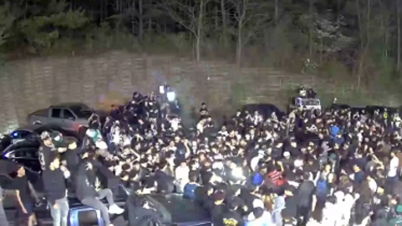 They say for four weekends in a row, this quiet space has turned into a massive party scene overnight. Around 2:30 a.m. it starts with just a few cars, but within an hour, hundreds of people pack this lot.