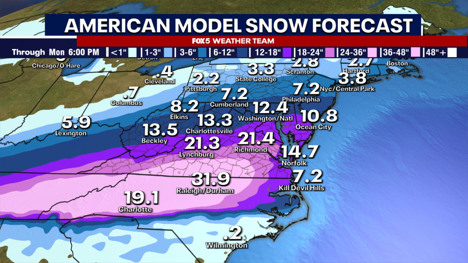 While I believe it is safest to wait until at least three days before the system due to possible changes in the track before we start issuing our official potential snowfall forecast from FOX 5, model guidance with the storm so far has generally been on the higher side.