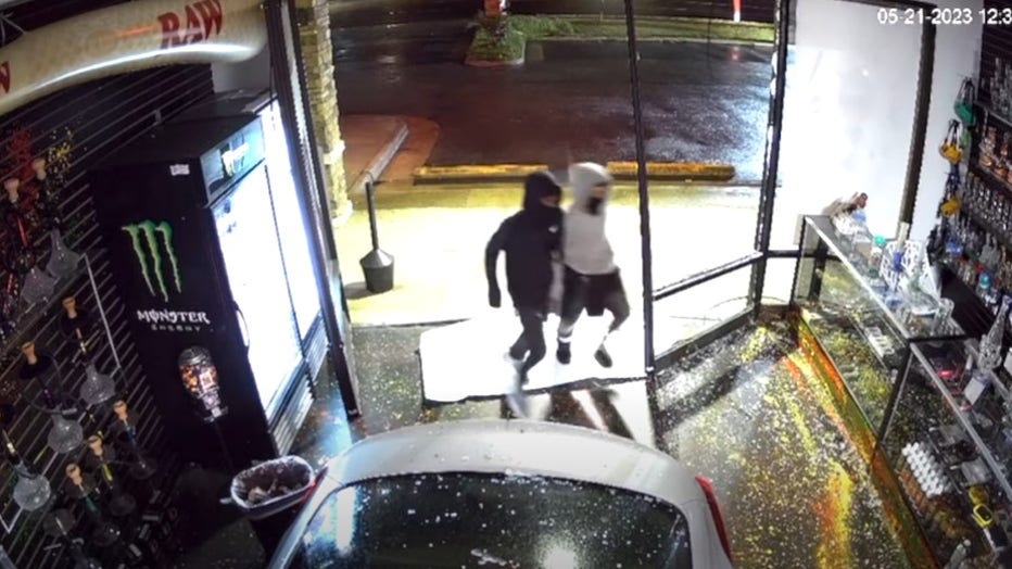 When officers arrived at the store around 12:40 a.m., they noticed the damage, but the thieves were already gone.