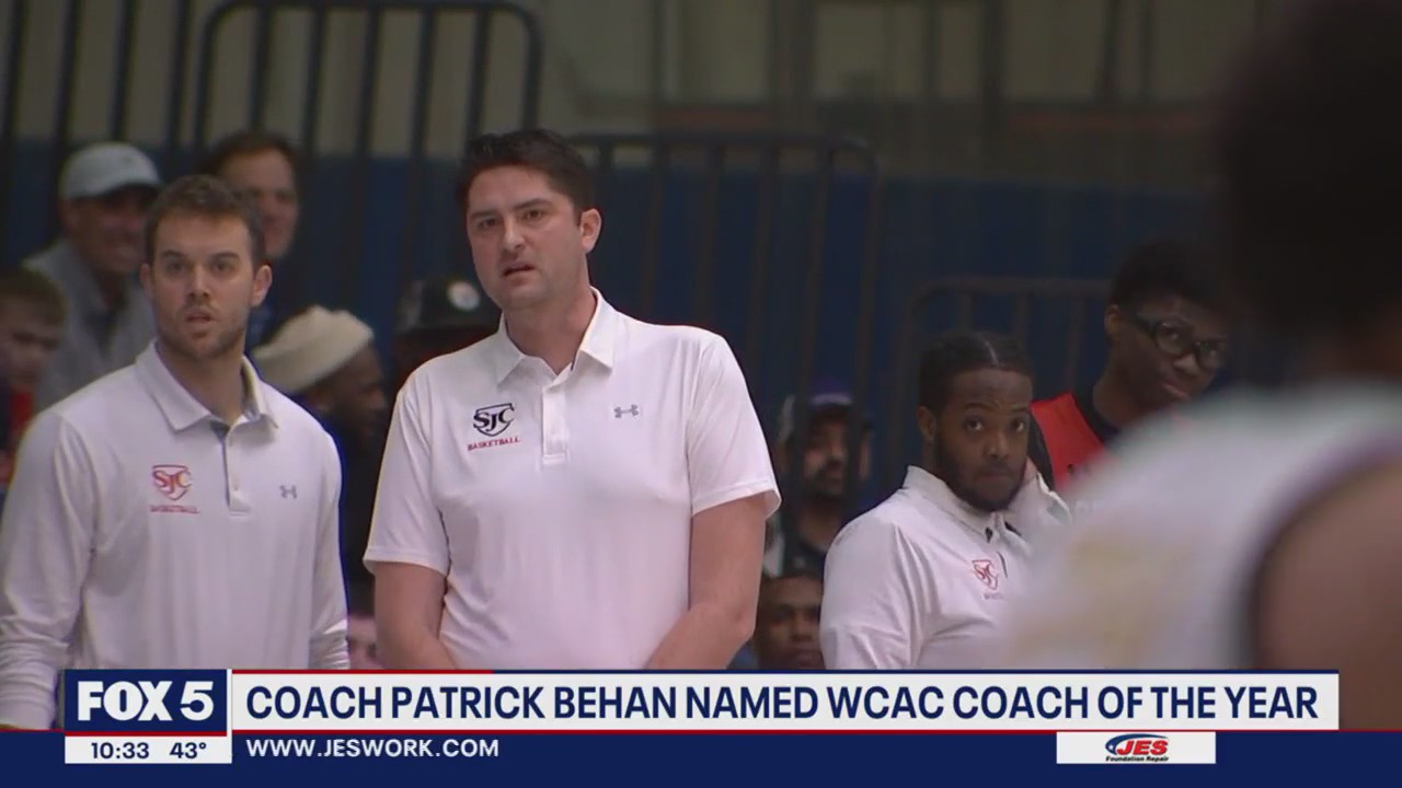 Patrick Behan, the head coach of the St. John's College High School's boy's basketball team, has been named the Washington Catholic Athletic Conference (WCAC) Coach of the Year. His team also won the WCAC Championship on Monday. FOX 5's Nana-Sentuo Bonsu spoke with Coach Behan at the championship game about the moment.