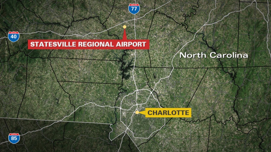 The Statesville Regional Airport is about 45 miles north of Charlotte.