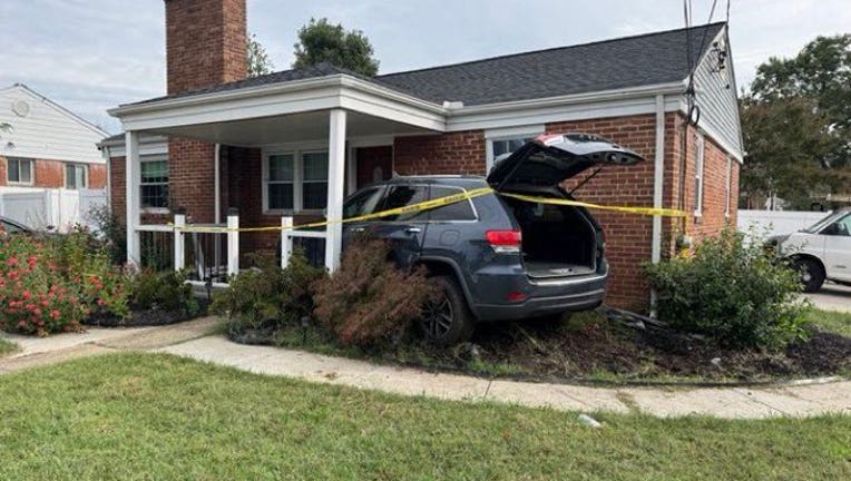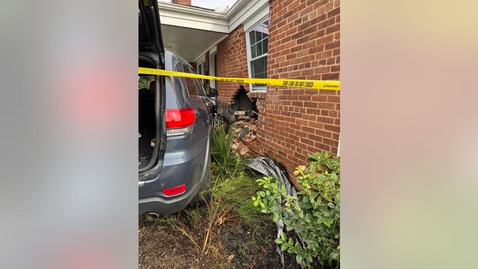 MONTGOMERY COUNTY, Md. - A two-car collision in Silver Spring ended with an SUV crashing into the side of a house, leaving a gaping hole in the brick structure and displacing a family of nine, according to police.