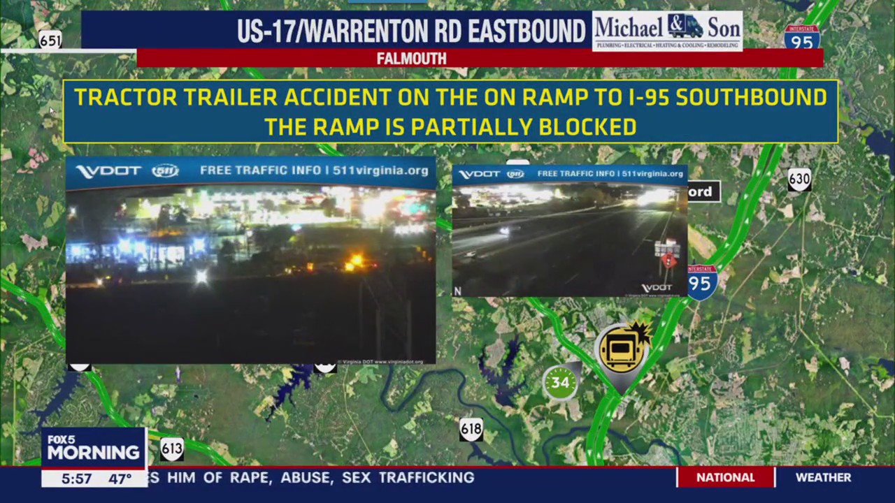 FALMOUTH, Va. - An early morning crash involving an tractor-trailer caused morning delays Friday in Falmouth.