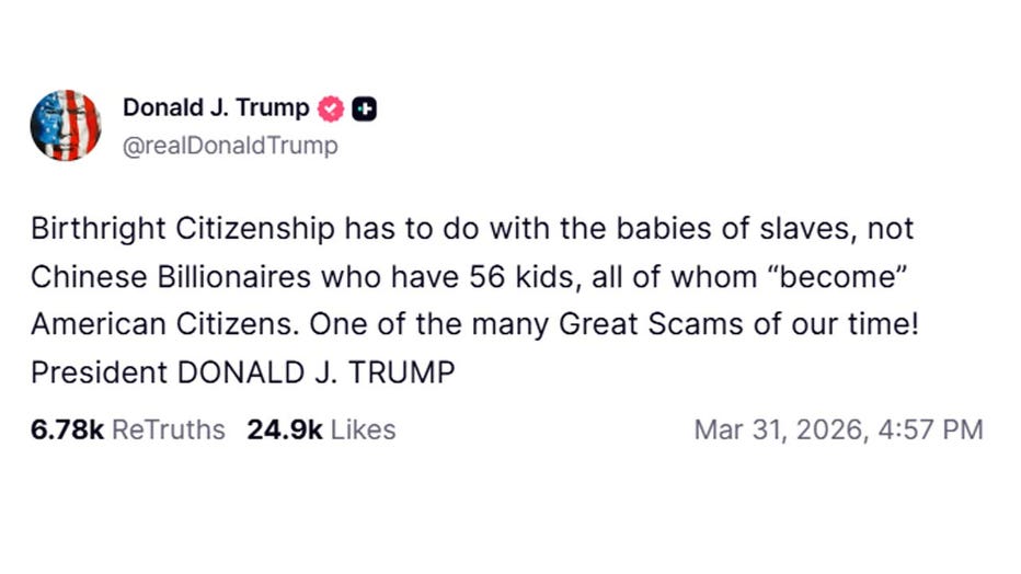 Trump to sit in on Supreme Court hearing on effort to limit birthright citizenship (Donald J. Trump / @realDonaldTrump)