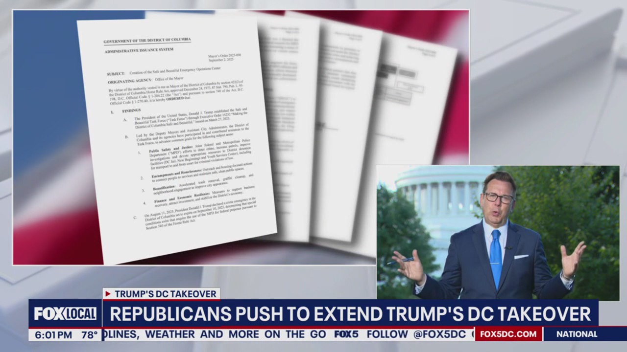 Republicans are moving quickly to extend President Donald Trump's control over the D.C. police force. The takeover was supposed to last 30 days, but now a new bill could extend it into next year. Meanwhile there were demonstrations back on Capitol Hill today. FOX 5’s Tom Fitzgerald joins us live. fitz house democrats also pushing back trying to end the takeover?
