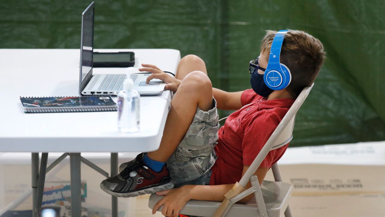 FILE - A third grade student sits during his online class from his social distanced desk on Sept. 3, 2020 in Los Angeles, California. (Photo: Al Seib / Los Angeles Times via Getty Images)