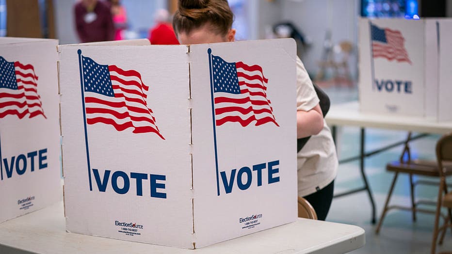 People cast their votes at the Whitman Middle School polling location in Alexandria, VA on April 21, 2026. (Photo by Maxine Wallace/The Washington Post via Getty Images)